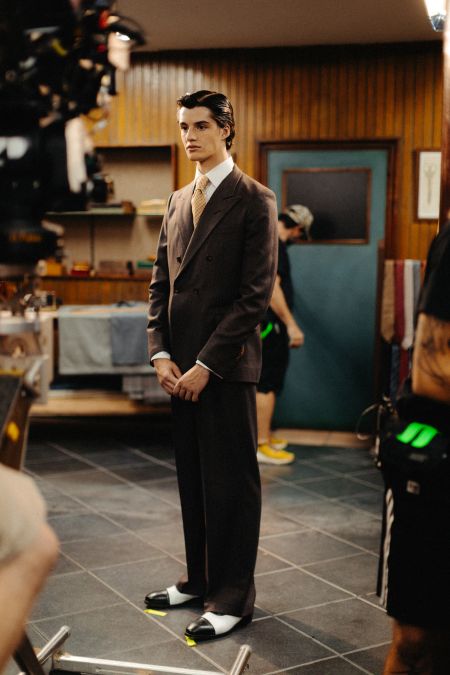 Masculina: peças estruturadas em lã e algodão, tons terra e verde, tecidos sustentáveis como Better Cotton, COOLMAX®, REPREVE® e THERMOLITE®.