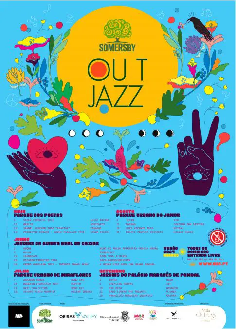 De maio a setembro, aos domingos, em cinco jardins diferentes do Município de Oeiras, com entrada gratuita, tem lugar o Somersby Out Jazz, o festival popular e animado com estilos musicais que vão desde o Soul, o Funk e o Hip-Hop.