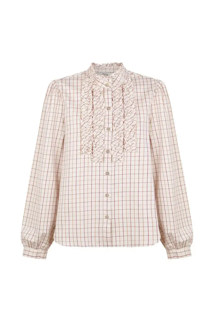 Blusa com padrão em xadrez. Em www.hossintropia.com. Foto DR