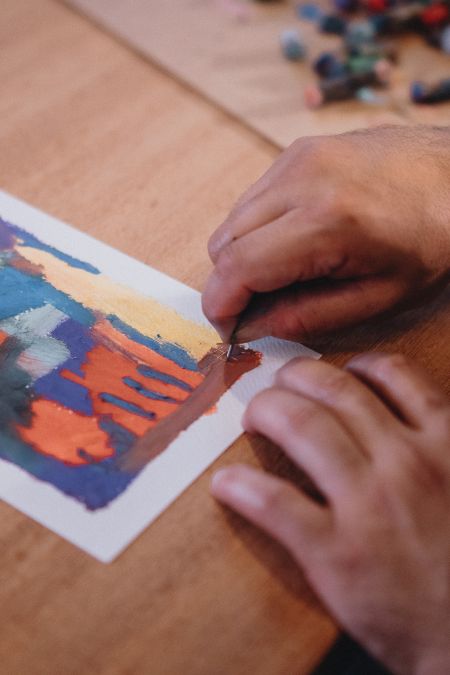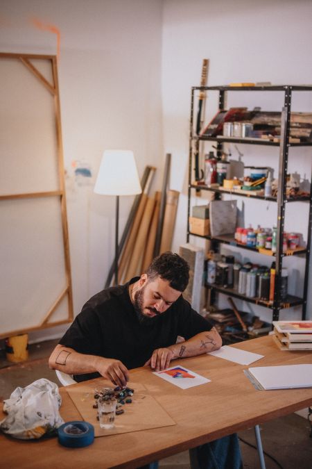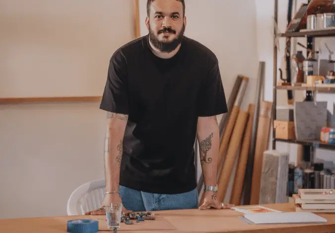 Durante a residência, Caram desenvolve obras inspiradas na essência do espaço, explorando elementos abstratos e figurativos que convidam à reflexão e à partilha.