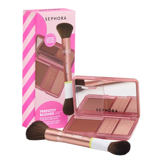- O Perfectly Blushed Set da Sephora Collection oferece três texturas de blush numa harmonia de rosa velho criada para este Natal.