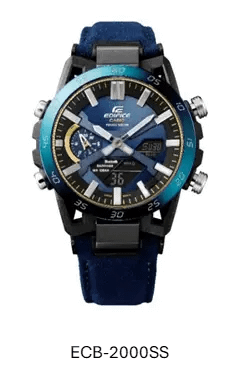 Este modelo, baseado no ECB-2000, um cronógrafo com um design único de braço de suspensão da linha de relógios EDIFICE, evoca o conceito de marca Velocidade e Inteligência. O relógio tem uma imagem de design de mostrador simples e elegante que lembra a sensação de uma relaxante excursão de carro e uma bracelete em tons de azul feita de Alcantara, um material fabricado em Itália que proporciona um desempenho notável.