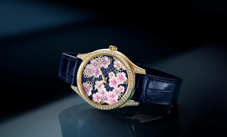 L.U.C XP Sakura by Night Celebra a beleza efémera das flores de cerejeira. Mostrador com guilloché, laca, madrepérola e diamantes.