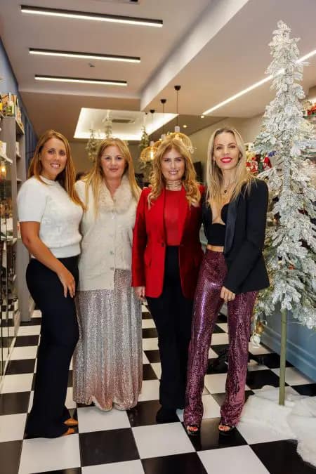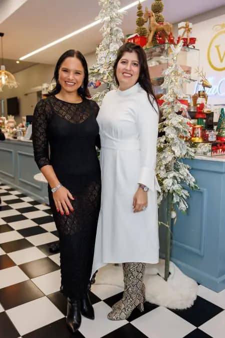 Um Chá de Natal com 60 amigas onde a decoração temática e a música ao vivo transmitiram glamour e bom gosto.