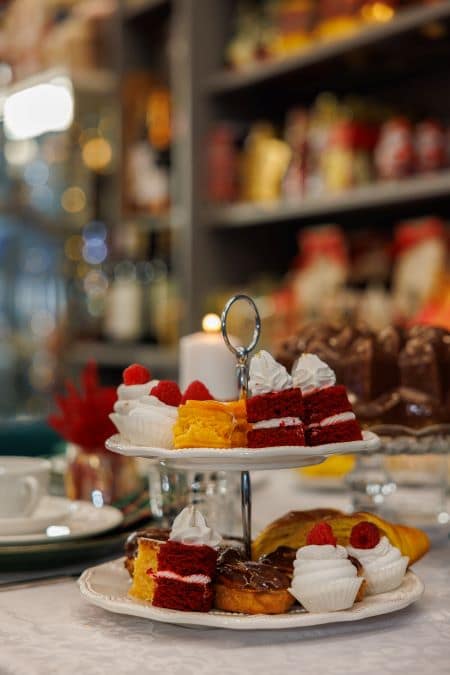 Há um doce para satisfazer todos os paladares, enquanto o chá quente aconchega a alma e oferece um momento de tranquilidade bem-vinda.