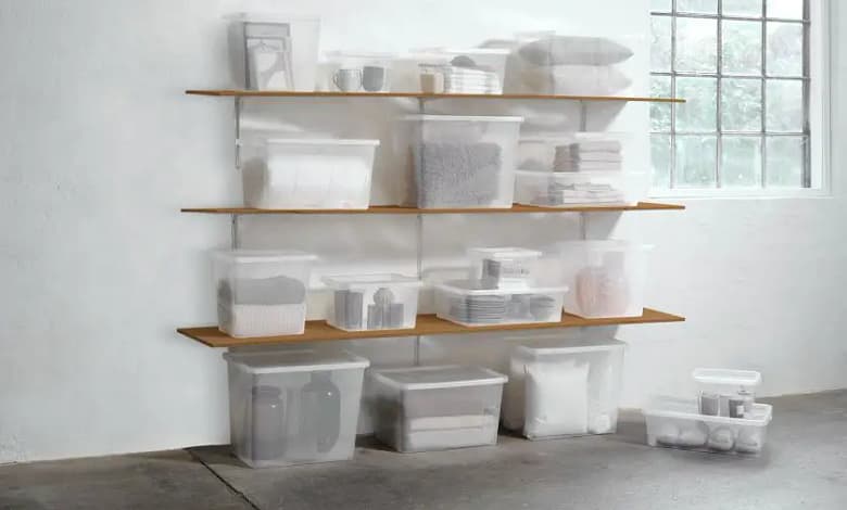 Esta caixa de cor transparente está disponível em vários tamanhos e facilita a organização.