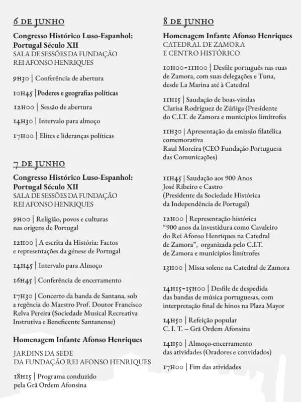 A Sociedade Histórica da Independência de Portugal organiza as comemorações dos 900 anos de Portugal, a ter lugar em Zamora de 6 a 8 de junho de 2025.