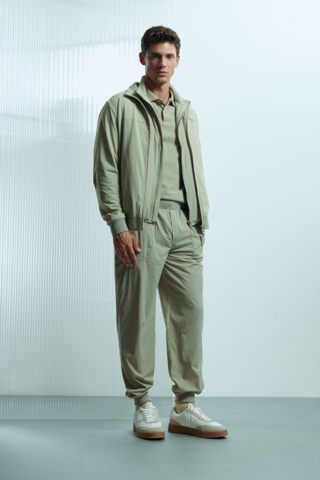 Entre o streetwear arquitetónico e o desporto universitário, surgem casacos scuba, joggers estruturados e malhas técnicas que transitam da cidade para o treino. Tons terrosos, neutros modernos e detalhes gráficos reforçam a atitude urbana e versátil da estação.