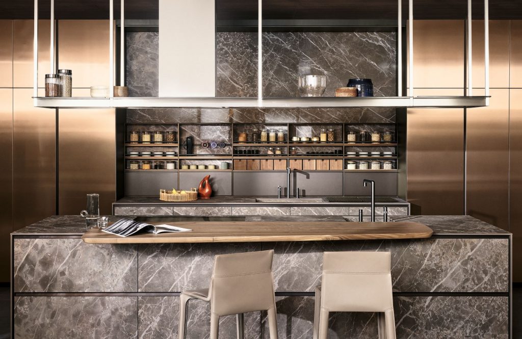 Os armários fechados deram lugar às prateleiras abertas, outra das tendências atuais. Estas prateleiras são perfeitas para expor objetos de decoração simples ou sofisticados, loiça que se usa diariamente e alimentos e condimentos.