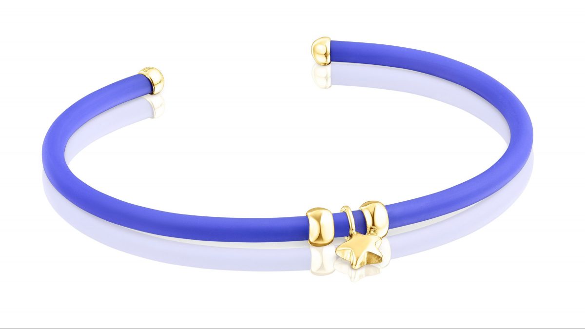 Pulseira St Tropez Caucho cor azul, estrela e prata vermeil