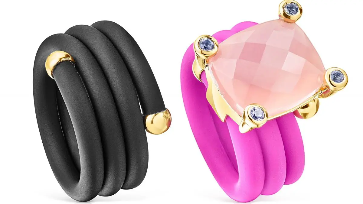 Anel triplo St Tropez Caucho, cor rosa com pedras preciosas
