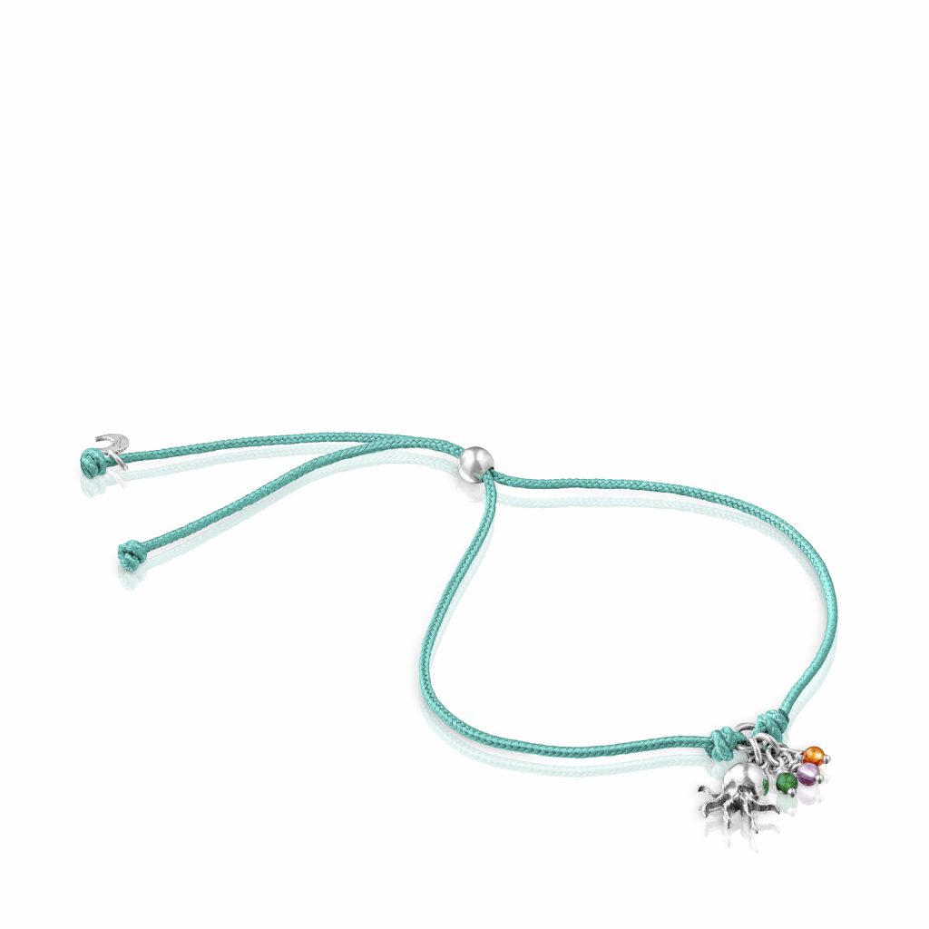 Pulseira com motivo polvo Save Ocean de cordão turquesa e pedras preciosas