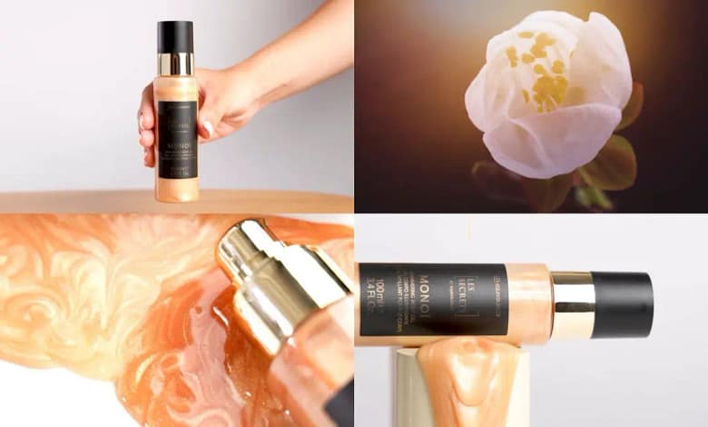 Loções corporais com textura em gel e partículas douradas, com fragâncias Tonka e Monoi, com ácido hialurónico para hidratação da pele