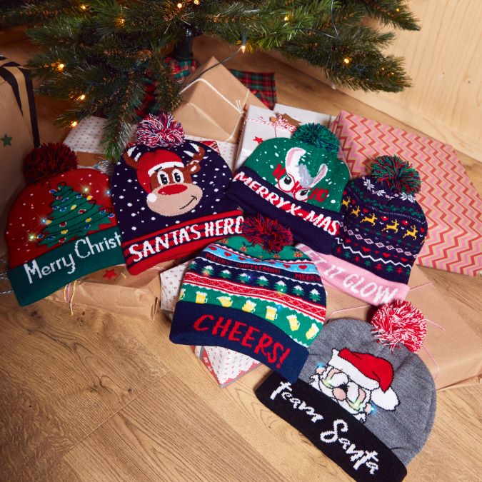 Além das camisolas de Natal também os acessórios, como gorros e meias, são elementos que complementam o seu look natalício a rigor.