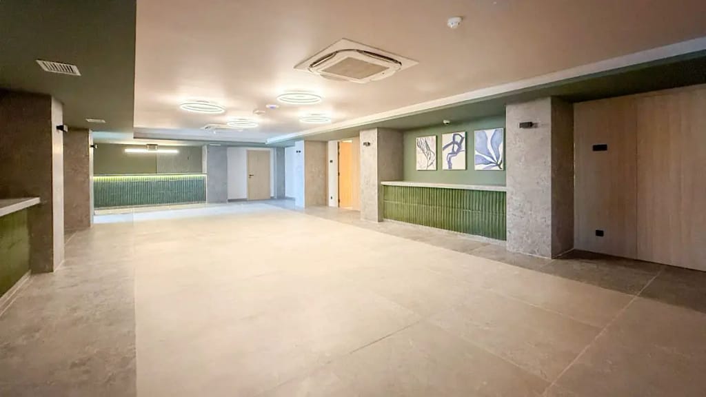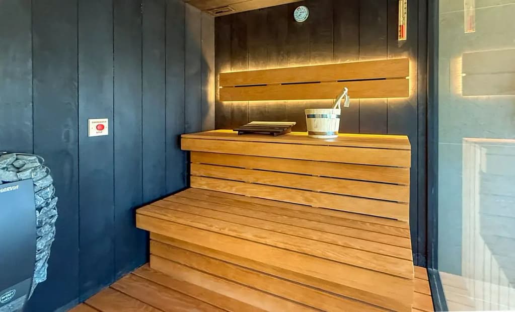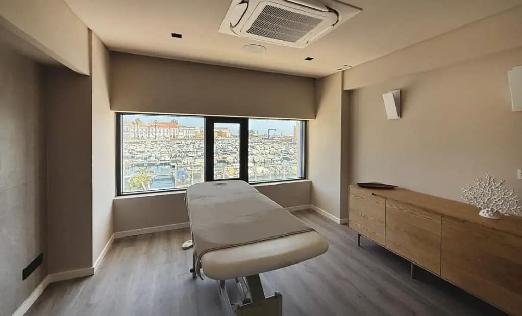 Tem uma Zona de relaxamento, 3 gabinetes de massagem, uma piscina interior (9m), jacuzzi, duche sensorial e jatos de água e está disponível 365 dias do ano.