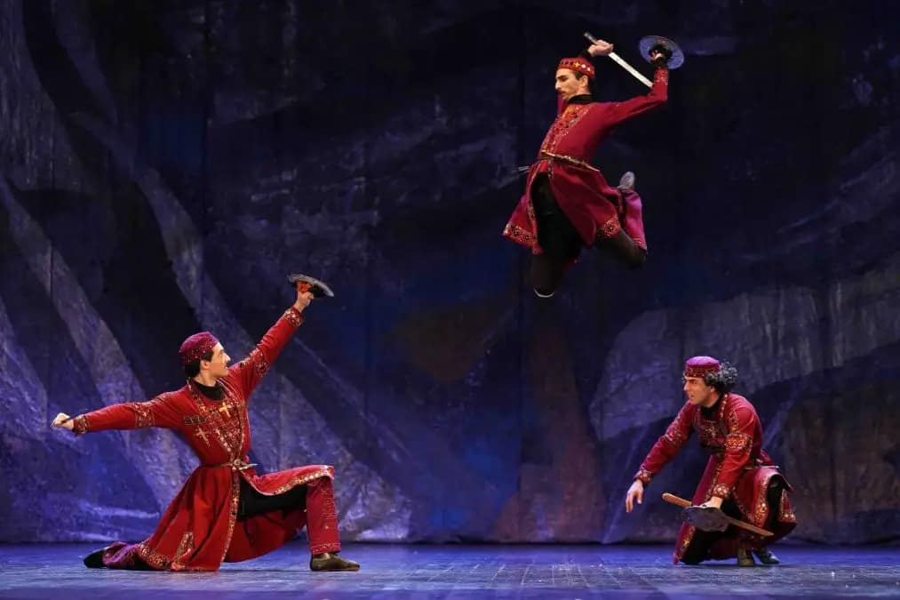O espetáculos tem como características ritmos caucasianos dinâmicos e precisos, coreografias exclusivas com facas e sabres, mistura de dança clássica com acrobacias e luxuosos trajes que evocam a cultura da Geórgia.