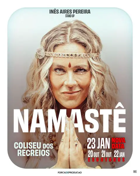 Depois de quase duas décadas a conquistar o público na televisão, cinema e teatro, Inês Aires Pereira estreia-se a solo com NAMASTÊ — um espetáculo intimista, com espírito de stand-up, onde partilha inquietações, vulnerabilidades e descobertas pessoais.