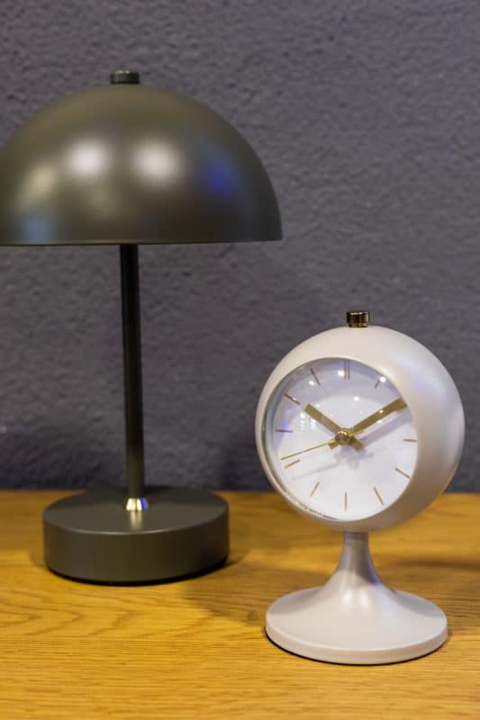 Candeeiro e relógiode mesa. Foto Paula Alveno