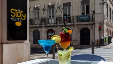 O restaurante Le Safran (Fine Dining) tem um design inspirado no oceano Atlântico e na cultura local, com cerâmica azul vibrante e iluminação intimista.