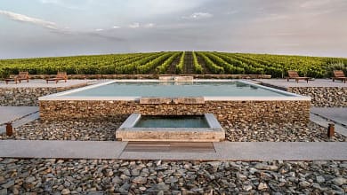 Utiliza materiais naturais, cores quentes e texturas inspiradas nas dunas e no oceano.