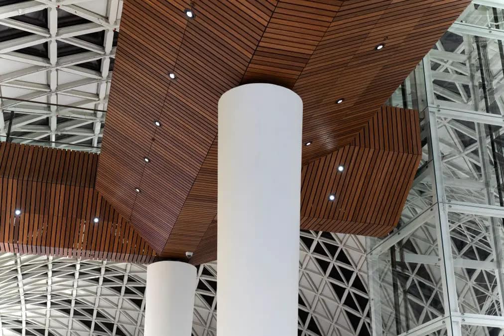 Seguimos os requisitos e objetivos internacionais, com base em nossa experiência e padrões internacionais. Seguindo o briefing do CRTKL, nossa meta era criar um ambiente acolhedor e estimulante para melhorar a experiência do visitante. Escolhemos usar uma temperatura de cor de 3.500 K em todos os lugares, seguindo o que é uma tendência cada vez mais popular em design de iluminação, especialmente em países que desfrutam de luz solar abundante. Uma temperatura que não seja nem muito quente nem muito fria: é um valor intermediário e estimulante. Então escolhemos LEDs com uma qualidade de iluminação superior, garantindo que todas as fontes tivessem um alto índice de reprodução de cor (>92) e um passo de MacAdam extremamente baixo, máximo 2, para garantir uma luz limpa e estável em todos os lugares. Também demos grande importância ao consumo de energia, tentando reduzi-lo ao mínimo. Por exemplo, nas áreas comuns internas, alcançamos um consumo de energia de cerca de 10 W/m². Isso nos permitiu atingir um equilíbrio entre eficiência energética e qualidade de iluminação, garantindo ao mesmo tempo um ambiente iluminado e confortável para os visitantes e um impacto ambiental reduzido.