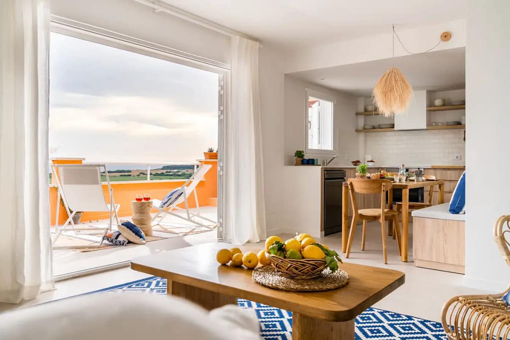 A luz que a ilha irradia no seu todo e a maravilhosa e espetacular vista foram o mote para as remodelações efetuadas no apartamento de 70m2, acrescidos de 30 m2 de terraço exterior, divididos entre um salão com cozinha em open space, dois quartos e duas casas de banho.