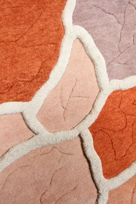 O tapete Dancalia é o resultado do trabalho de tecelagem e escultura de artesãos nepaleses especializados, protegidos pela certificação ética Rugmark.