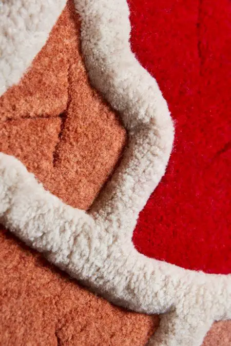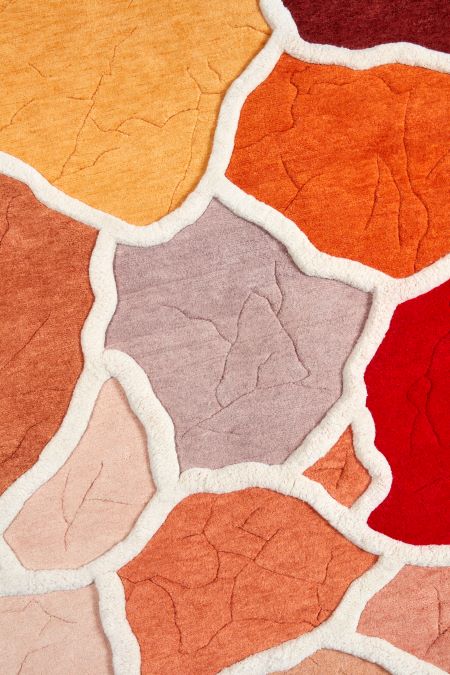 Das cores incríveis – que vão do cobalto ao vermelho lava, passando pelos azuis claros, verdes, amarelos e laranjas – daquele “inferno a céu aberto” etíope, Abreham escolheu os tons mais quentes, para criar um todo harmonioso, uma forma de lã orgânica adequada aos interiores.
