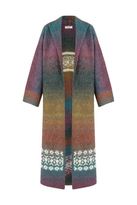 A coleção “Onírico” revela-se em múltiplas peças que traduzem liberdade e delicadeza: casacos fluidos que abraçam o corpo com conforto, saias longas estampadas que dançam ao ritmo de cada passo, e vestidos de malha em tons quentes que evocam o espírito boho da estação.