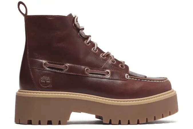 Bota Stone Street Platform Kiltie, mistura de clássico e moderno, com materiais reciclados