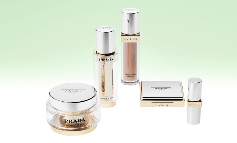 Nos olhos Prada Dimensions Eyeshadow 03, 04, 05, 06 e Prada Augmented Skin The Serum.