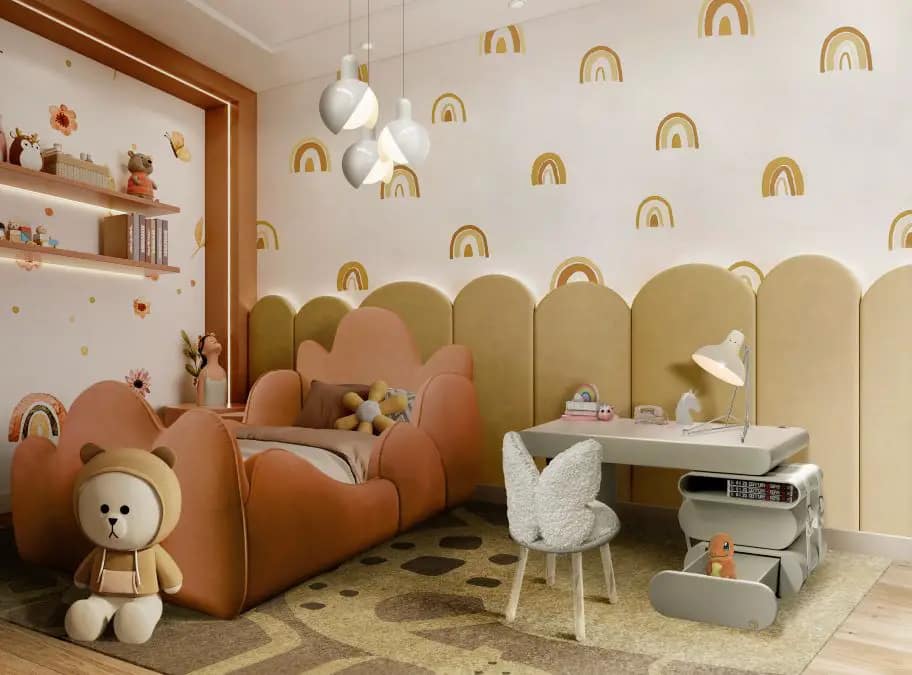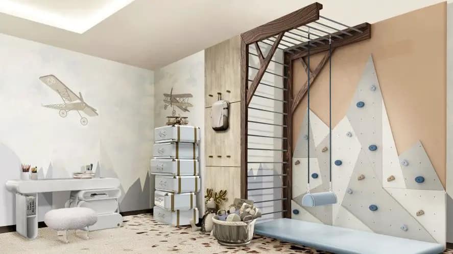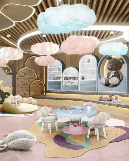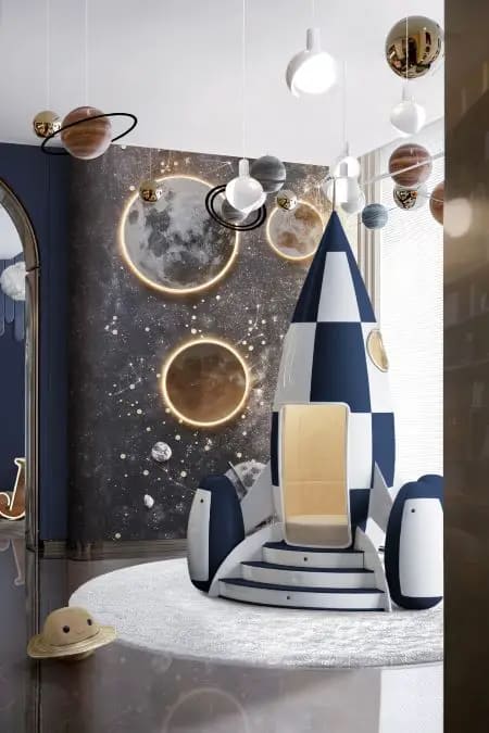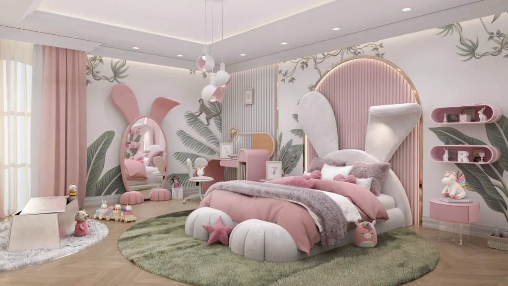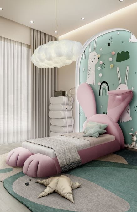 No centro dos quartos e salas de jogos deslumbrantes, também estão peças de destaque, como a cama Mr. Bunny, a cama Tristen, o Rocky Rocket, o Cloud Lamp, a Dream Desk, a Little Bunny Chair e o Mogli Gym.