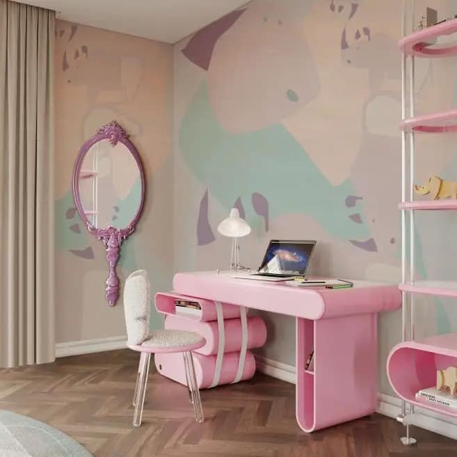Para que a diversão continue, o Dream Desk oferece um espaço de trabalho para artistas e acadêmicos iniciantes darem asas à sua imaginação. Em conjunto com a cadeira Little Bunny, é o local perfeito para fazer os trabalhos de casa, os trabalhos manuais ou simplesmente sonhar acordado durante a tarde. As formas curvas da mesa avivam ainda mais a beleza do quarto da criança e aumentam a sua imaginação. Com escolhas de compartimentos criativos, o Dream tem a arrumação completa para todos os materiais da criança.