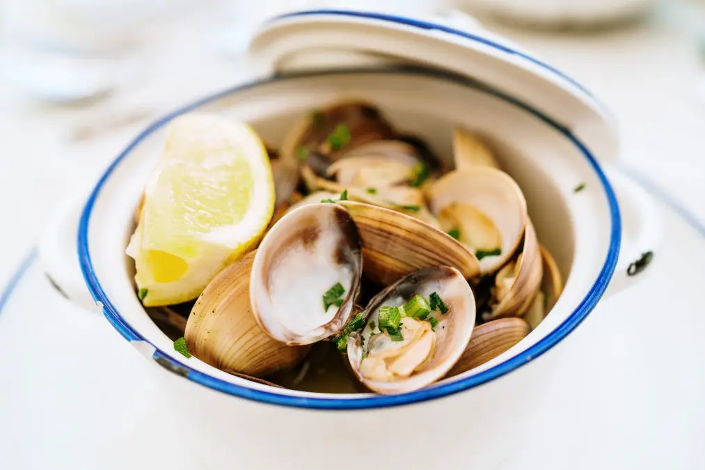 - Entradas: camarões salteados, pica-pau de novilho, empada de perdiz, amêijoas à Bulhão Pato, bisque de caranguejo
