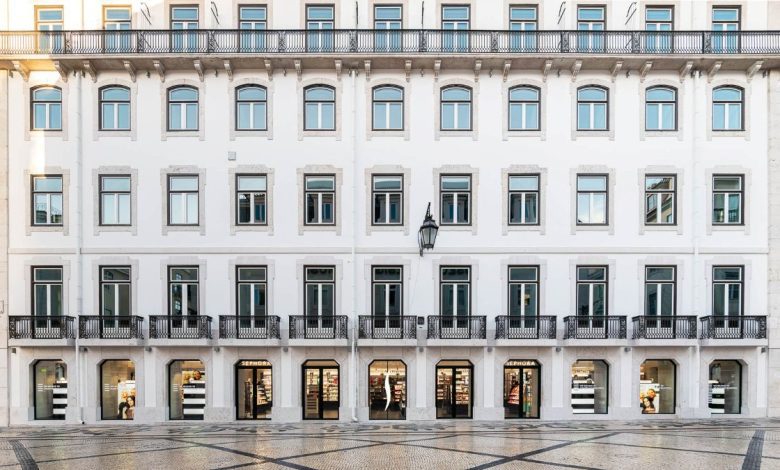 Este novo espaço de 265 m² combina o design contemporâneo com a arquitetura pombalina, respeitando a fachada histórica com 19 janelas e 60 metros de comprimento.
