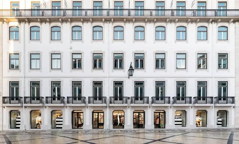 Este novo espaço de 265 m² combina o design contemporâneo com a arquitetura pombalina, respeitando a fachada histórica com 19 janelas e 60 metros de comprimento.