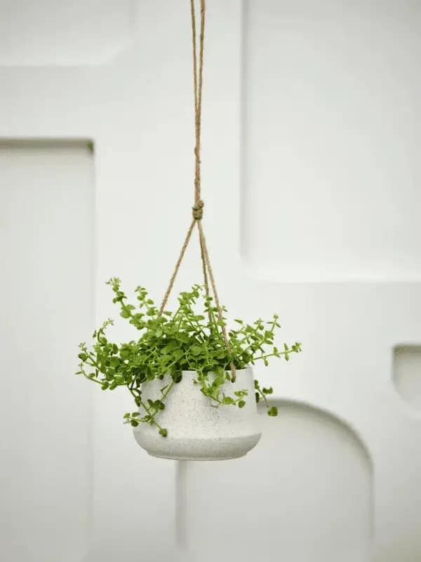 O vaso suspenso KLIPPEDUE permite adicionar flores frescas ou ervas aromáticas para um ambiente descontraído.