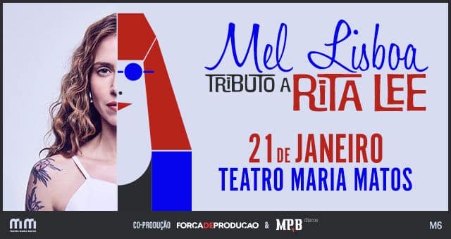 A actriz e cantora brasileira Mel Lisboa atua em Lisboa nos próximos dias 21 e 22 de Janeiro, no Teatro Maria Matos. Um concerto de homenagem à vida e obra de uma das maiores artistas da música brasileiraa inesquecível Rita Lee.