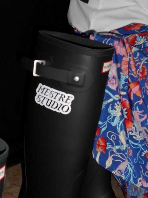 Hunter em destaque: As botas foram personalizadas com autocolantes criados pelo designer, com referências ao seu universo visual: bolinhas, ceifeiras, cadeiras de Arraiolos e o logo Mestre Studio.
