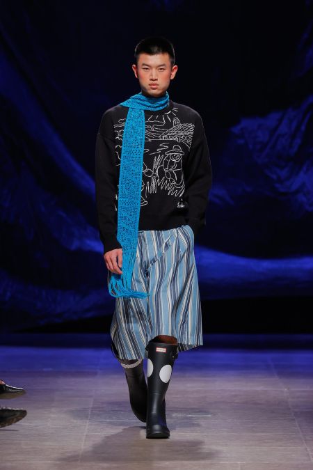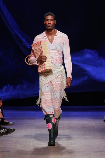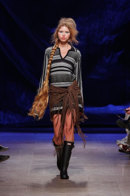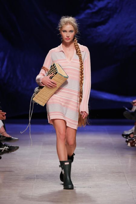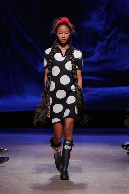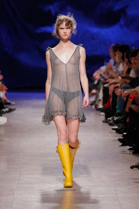 Pela primeira vez, integrou as icónicas botas Wellington da Hunter, numa fusão entre moda contemporânea e herança rural.