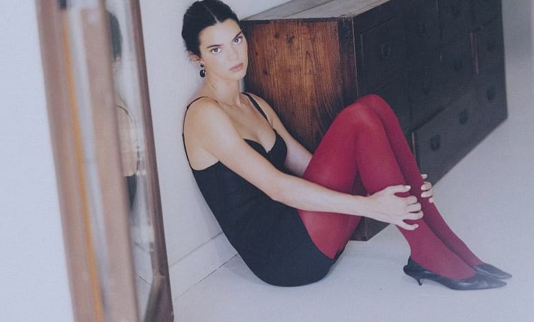 Kendall Jenner, inaugura a época festiva com collants vermelhos ousados da nova coleção da Calzedonia.