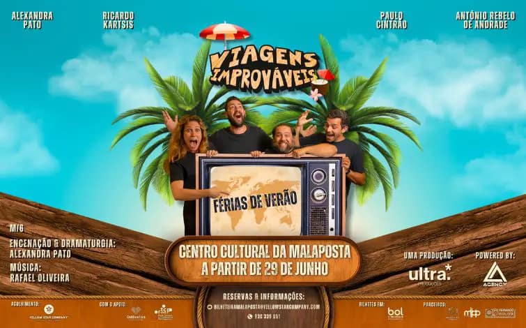 O espetáculo “Viagens Improváveis – Férias de Verão”, volta a estar em palco nos dias 6 e 20 de julho, pelas 21h30, no Centro Cultural Malaposta.