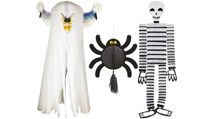 · Decoração temática: Fantasmas, esqueletos e aranhas para criar ambientes arrepiantes, tanto dentro como fora de casa.